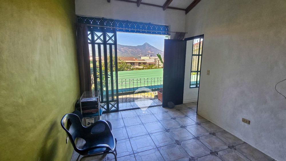 Estudio, baño, sala familiar, 4 habitaciones y 3 baños. La habitación principal con baño privado jacuzzi, walk-in closet y vista al volcán de San Salvador.