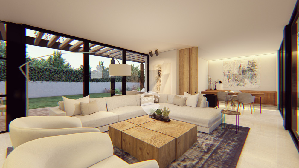Sala y comedor con ventanales de gran altura